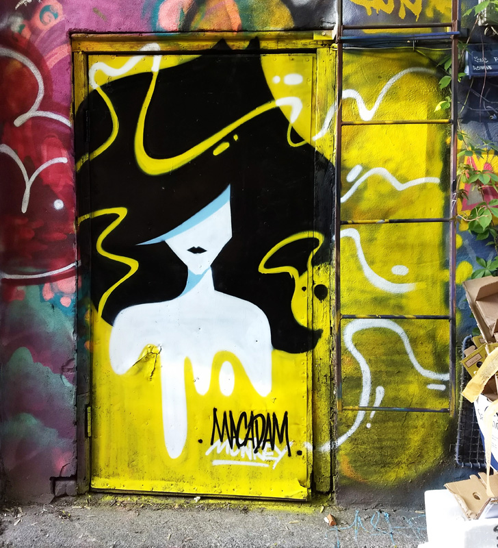 macadammonkey-slc1806 2019/01/12 728 × 800 Door 2 door Montreal Macadam Monkey on door in a graffiti alley