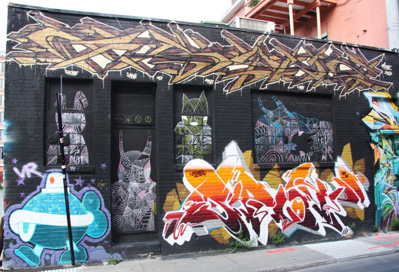 underpressure13 2014/08/07 1175 × 800 Under Pressure Festival 2013 Under Pressure Festival Zone 2013 – Turtle Caps (bottom left), Asyne (top letters), Mark Esprit (bottom letters), unidentified (door and windows) and Mastrocola (partial far right), on de Bullion