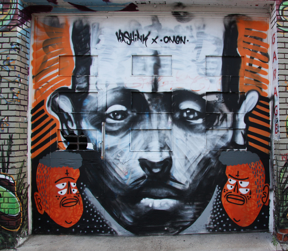 Omen and Kashink on garage door on St-Dominique