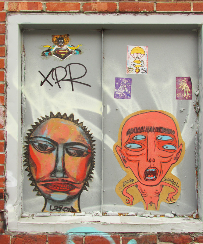 labrona09 2014/09/26 666 × 800 Labrona Labrona (left) and Mono Sourcil (right), wheatpastes on St-Dominique with stickers by Graffiti Knight, Turtle Caps and Il Flatcha