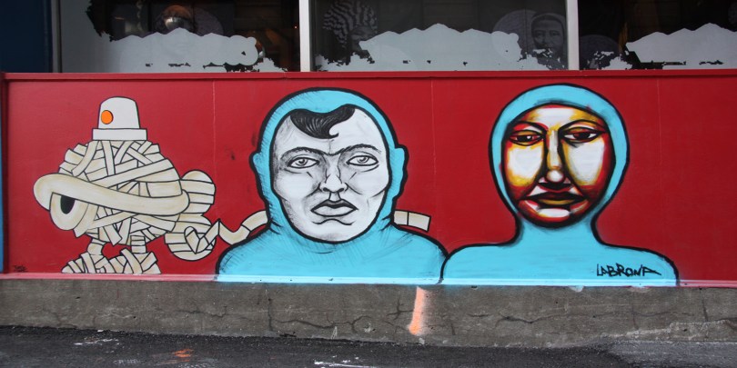 underpressure2014-18 2014/09/23 1600 × 800 Under Pressure Festival 2014 Under Pressure Festival zone 2014 – 210 Ste-Catherine – from left to right: Turtle Caps, Mono Sourcil, Labrona