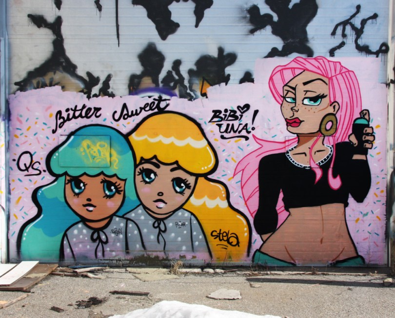stela-bibiuna-fruits1608 2017/03/08 994 × 800 Stela Stela (left) and Bibi Una (right) on an abandoned warehouse in Hochelaga