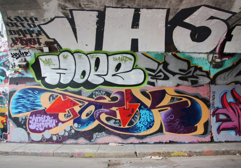 rouen-nm3g-hope 2015/05/05 1144 × 800 De Rouen legal graffiti tunnel Unidentified artist (bottom) and Hoper (middle) at the Rouen legal graffiti tunnel