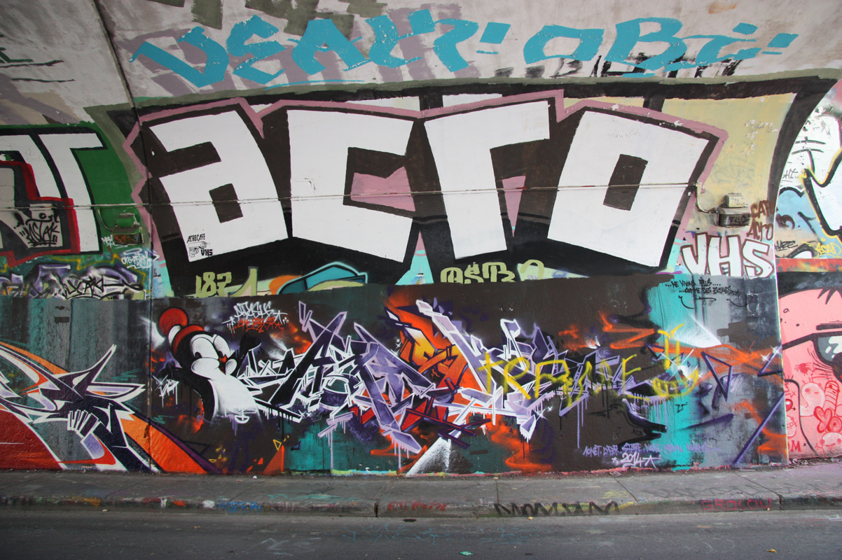 rouen-nm8 2015/01/14 1202 × 800 De Rouen legal graffiti tunnel Apashe (bottom) and Acro (top) at the Rouen tunnel legal graffiti wall