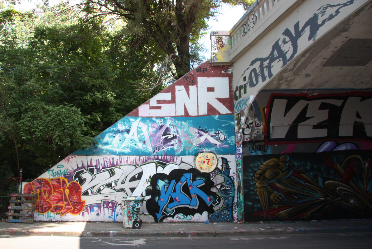 rouen-sl1 2015/01/14 1193 × 800 De Rouen legal graffiti tunnel Penar (bottom left), unidentified (bottom right), Apashe (middle), Saner (top) at the Rouen tunnel legal graffiti wall
