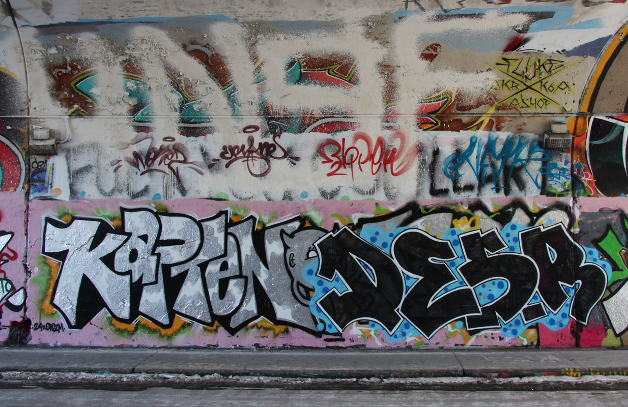 rouen-sm6d 2015/03/26 1234 × 800 De Rouen legal graffiti tunnel Kapten (bottom left), Desr (bottom right) at the Rouen tunnel legal graffiti wall