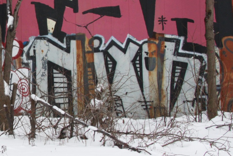 Nixon graffiti near train tracks in Mile End