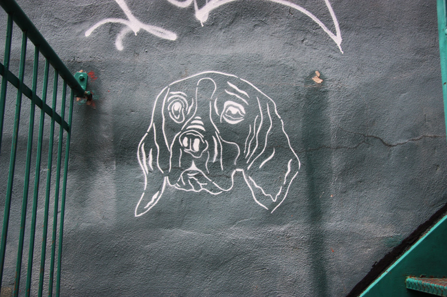 slcf-dog 2015/10/09 901 × 600 St-Laurent|Clark back alley between Laurier and St-Viateur stencil by Dookie3 in alley between St-Laurent and Clark