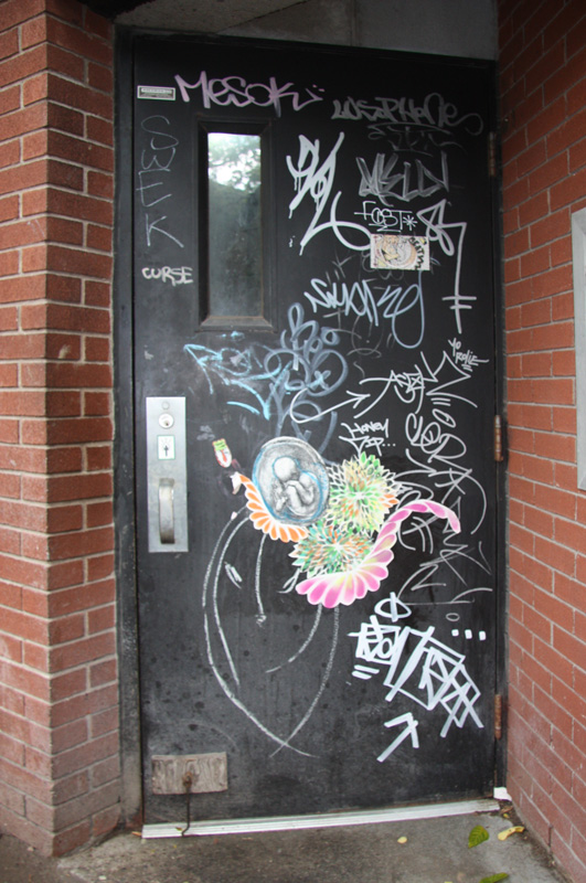 slcf-lilyluciole-tiktok 2015/02/27 531 × 800 St-Laurent|Clark back alley between Laurier and St-Viateur Door in alley between St-Laurent and Clark featuring mainly a wheatpaste by Lily Luciole, stickers by TikTok, Cif and Meat and lots of tagging including Tik Tok in bottom right corner