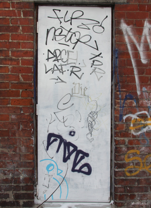 slcf-roc514 2015/02/27 584 × 800 St-Laurent|Clark back alley between Laurier and St-Viateur ROC514 (bottom left corner), FiveEight (tag above it) and other tags in alley between St-Laurent and Clark