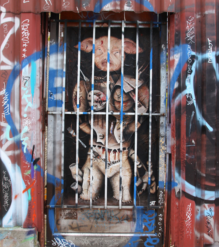 Kat wheatpaste in an alley