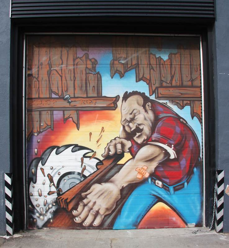 Commissioned piece on garage door by Scaner and/or Axe