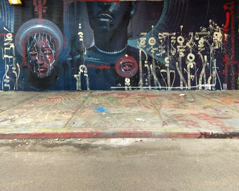 monke-draworking-rouen2107 2021/08/01 1003 × 800 Monk.e Monk.e at the Rouen legal graffiti tunnel featuring Draw Or King on the red face and eye