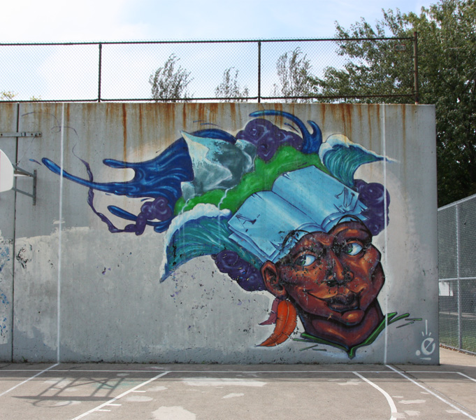 Monk.e at a Pointe St-Charles basketball court