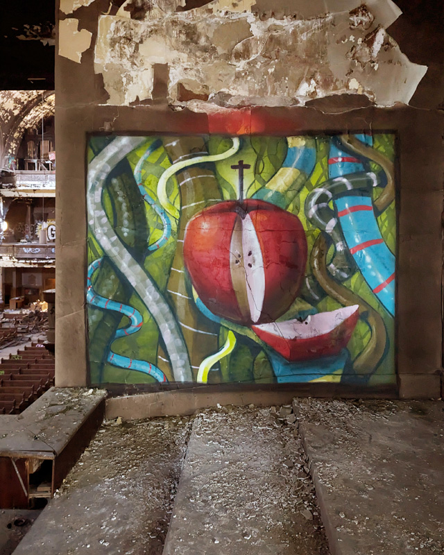 Monk.e inside an abandoned church