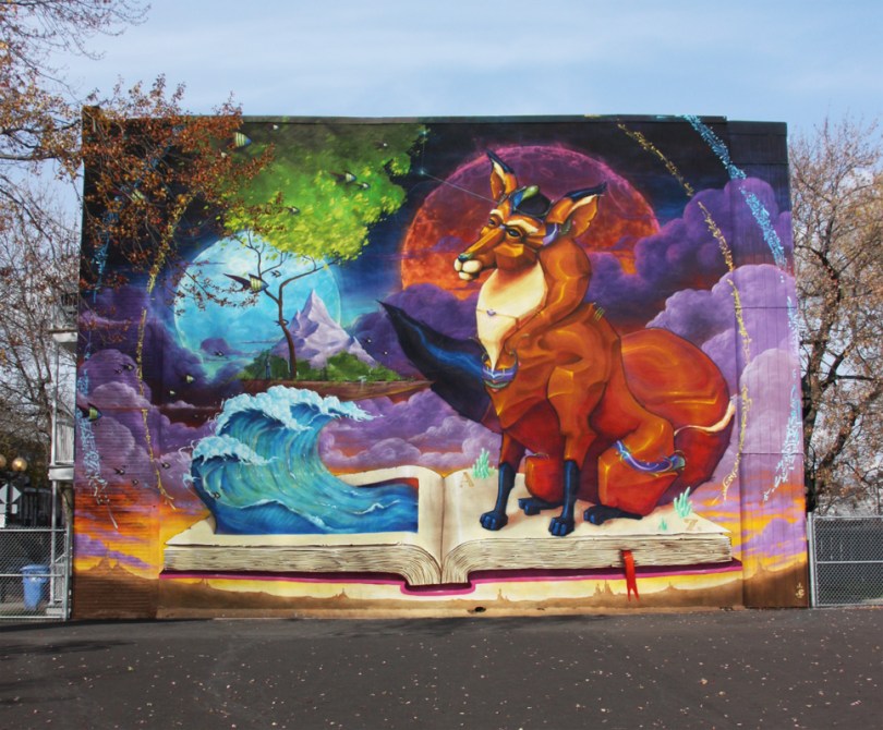 Monk.e mural in a Ville Emard school playground