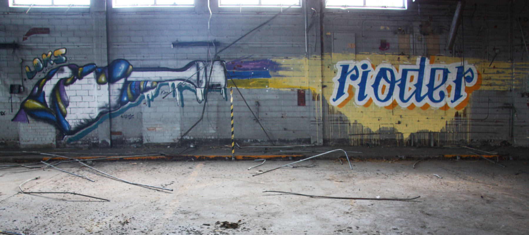 new1506-loks-riode 2015/06/23 1800 × 800 New painted works May-June 2015 Loks (left) and Riode (right) in abandoned industrial building