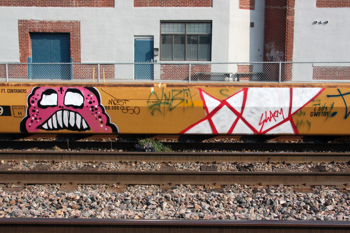 new15067-swarm 2015/07/09 1200 × 800 New street art June-July 2015 Timmy Drift aka Tim Skynz (left) and Swarm (right) on parked train in Petite Patrie