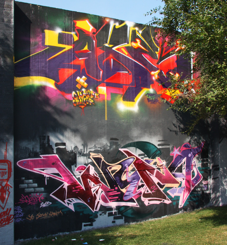 graf1508-axe-wuna 2015/10/05 742 × 800 New graffiti August-September 2015 Axe (top) and Wuna (bottom) at the Lachine legal graffiti wall