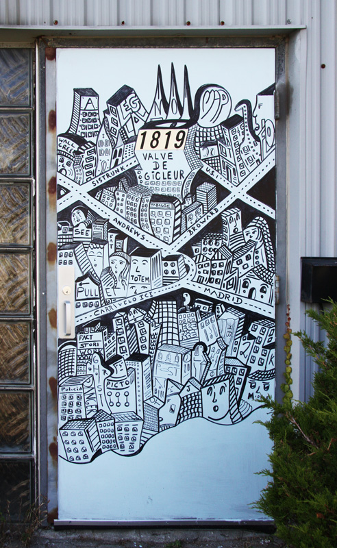 new1509-shanewatt2 2015/10/07 492 × 800 New murals and other painted works September 2015 Shane Watt on door in Petite-Patrie