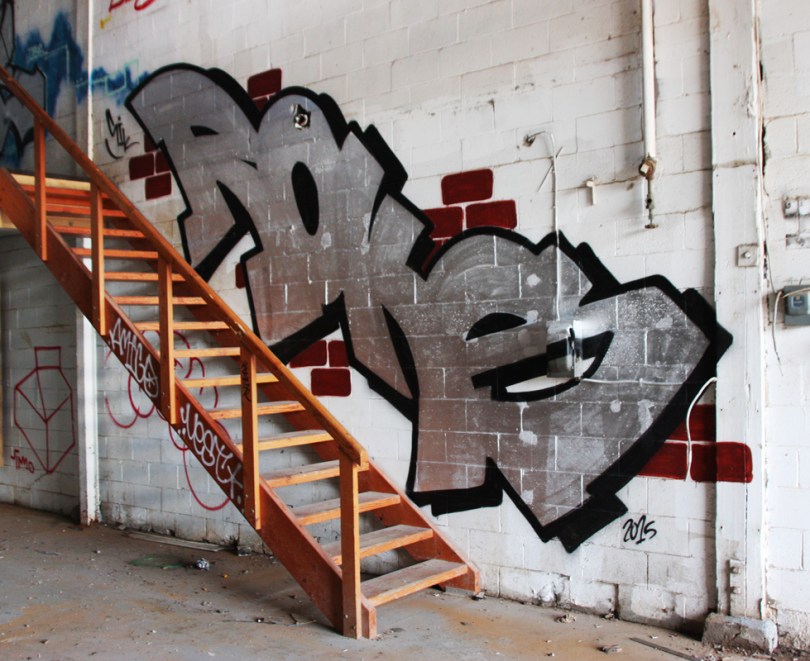 graf1511-skor2 2016/04/10 979 × 800 New graffiti November 2015 Skor, up the stairs backwards in the abandoned Transco