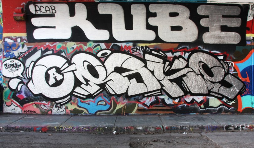 rouen1604-eskro 2016/04/29 1372 × 800 De Rouen legal graffiti tunnel 2016 part 1 Eskro (ground) and Kube (above) at the Rouen legal graffiti tunnel
