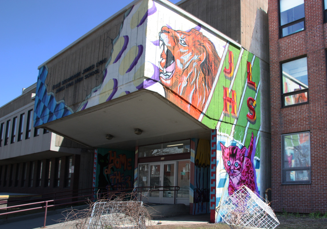 wall of high school entrance by Hrkr