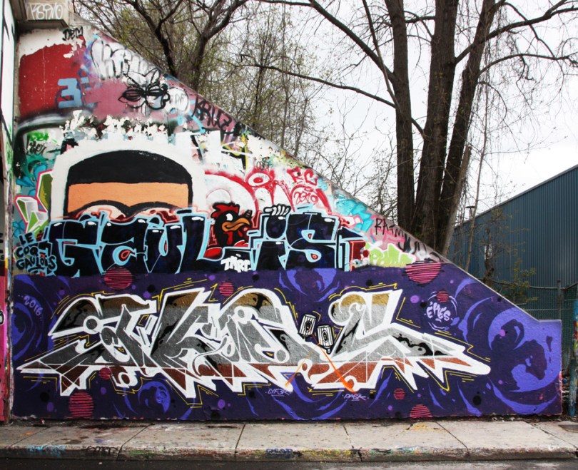 rouen1605-ekes 2016/05/17 982 × 800 New graffiti May 2016 Ekes (ground) and Gaulois (middle) at the Rouen legal graffiti tunnel