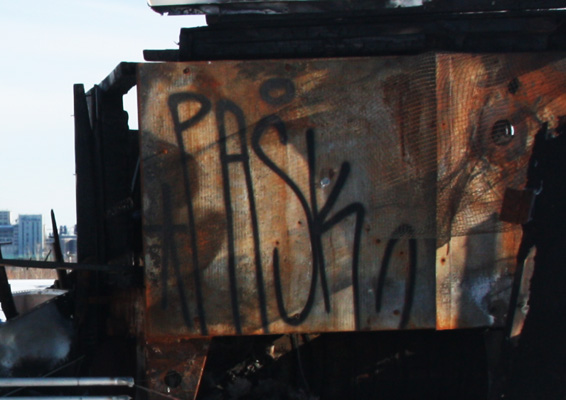 tag by Pask on the roof of an abandoned warehouse
