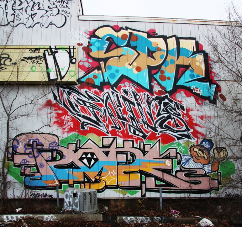 spk-gnius-raker-tang 2017/03/29 856 × 800 The “Jailspot” Raker (ground level), Gnius (middle) and someone for SPK (above) outside the abandoned “Jailspot”