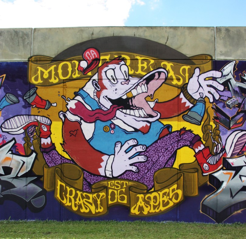 fezat-korb-longueuil1707 2017/07/20 821 × 800 Festival de Canes Close-up on Fezat and Narc’s central character on the Crazy Apes wall at Festival de Canes