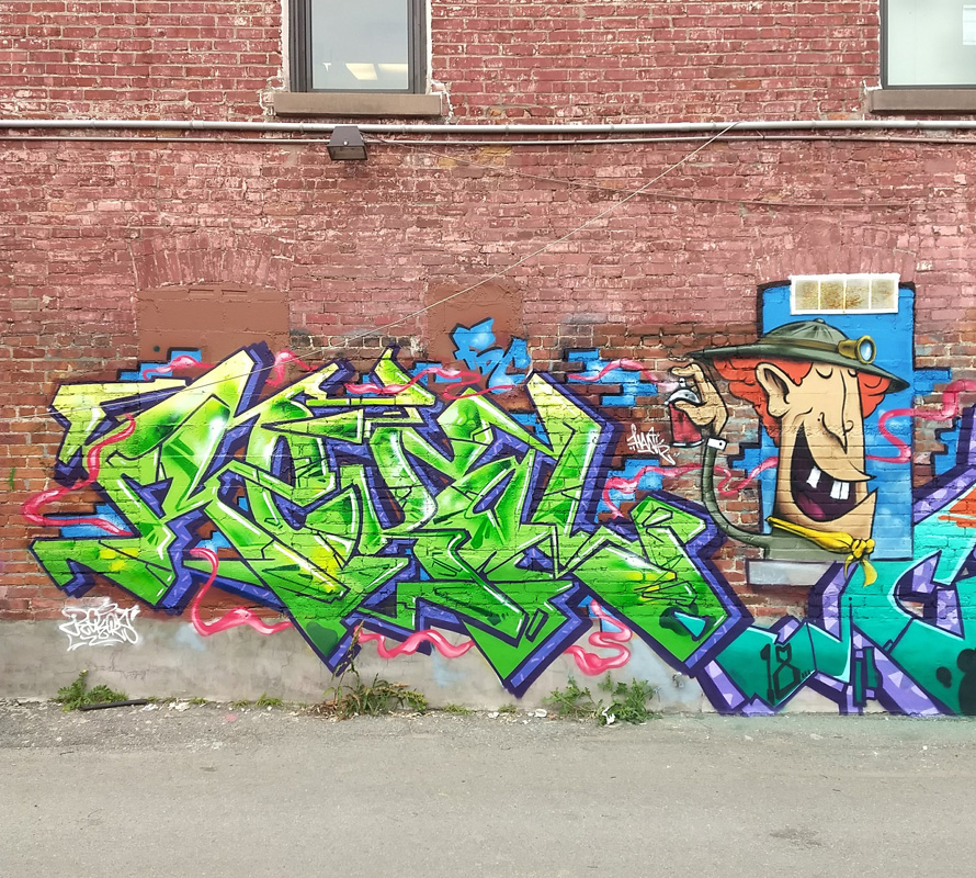 rekal-frankbo-sdd1806 2018/12/30 890 × 800 Retrospective of 2018 graffiti Rekal (letters) and Frank Bo (character) in a Plateau alley