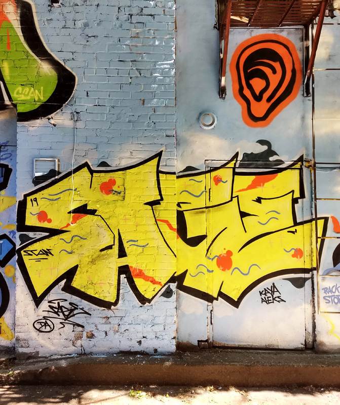 sage-mural19 2019/07/12 671 × 800 Mural Festival 2019 Sage (namepiece) and Zoltan (ear) contribution to the tribute wall to Scan done for the 2019 edition of Mural