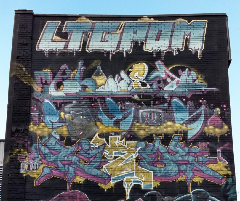 ek7-fokus-rizek-up19 2019/10/31 954 × 800 Under Pressure Festival 2019 close-up on the pieces of EK Sept, Fokus (Ofusk) and Rizek on the LTG/POM wall for the 2019 edition of Under Pressure