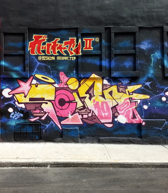 scien-up19 2019/10/31 696 × 800 Under Pressure Festival 2019 Scien’s segment on the 123 Klan wall for the 2019 edition of Under Pressure