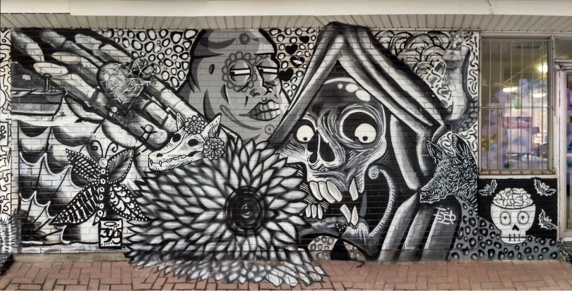 omarbernal-adi-mariposa-verbe-huiledolive-sciwalkart-grils-timoh-aldarwin-taqueria2010 2021/01/05 1566 × 800 Retrospective of 2020 murals and other painted street art Omar Bernal, Adi, Mariposa, Verbe, Huile d’Olive, SciWalkArt, Grils, Timoh Garcia and Aldarwin from a Dia de los Muertos production on the walls of a Hochelaga taqueria