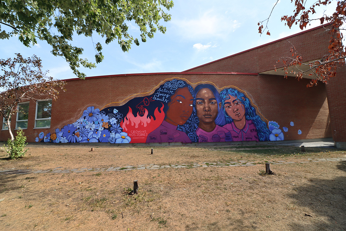 lna-moule-abir-cdn2108a 2022/01/03 1200 × 800 Retrospective of 2021 murals and other painted street art LNA, Moule and Abir on the wall of a community centre in Côte des Neiges
