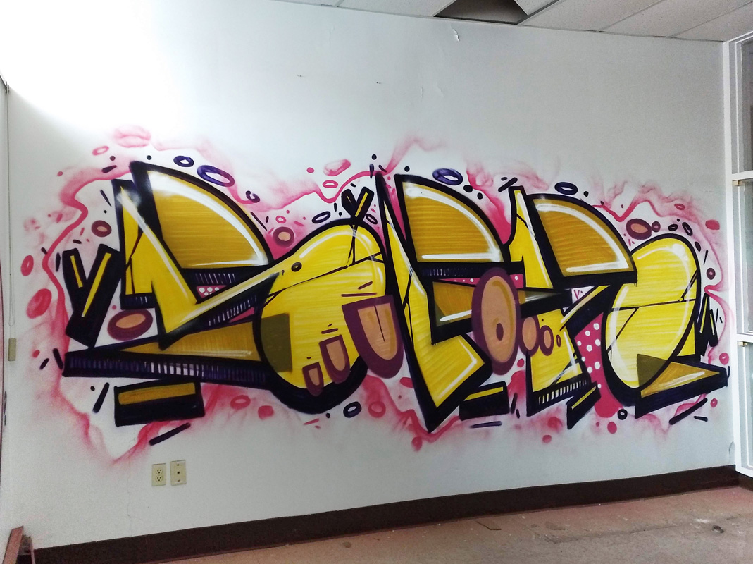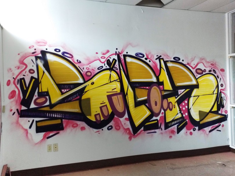 Ofusk writing Sufok inside an abandoned building