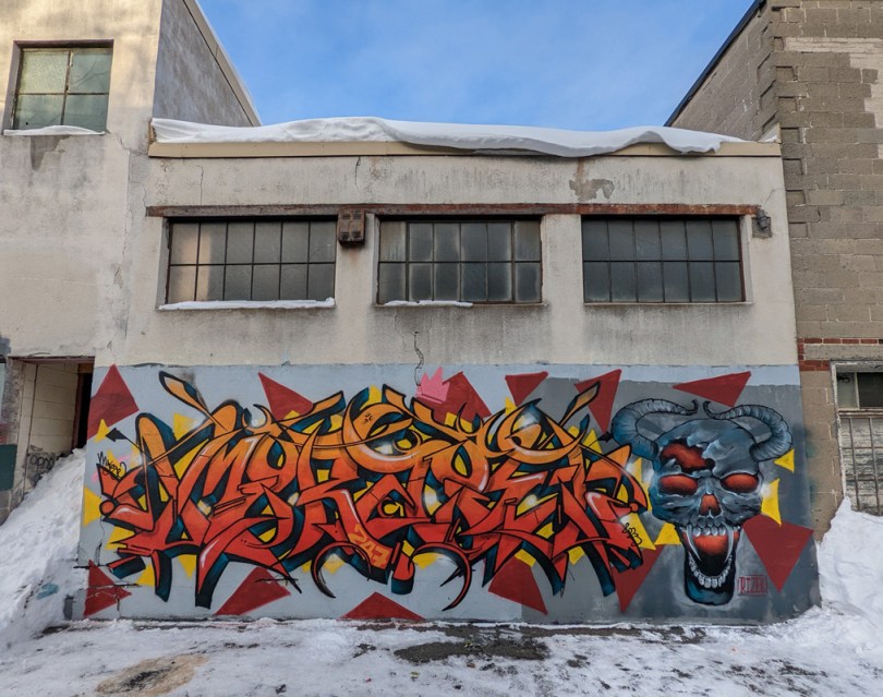 myrage-rizek-hochelaga2301 2024/01/01 1013 × 800 Retrospective of 2023 graffiti Myrage on letters and Rizek on character, in Hochelaga