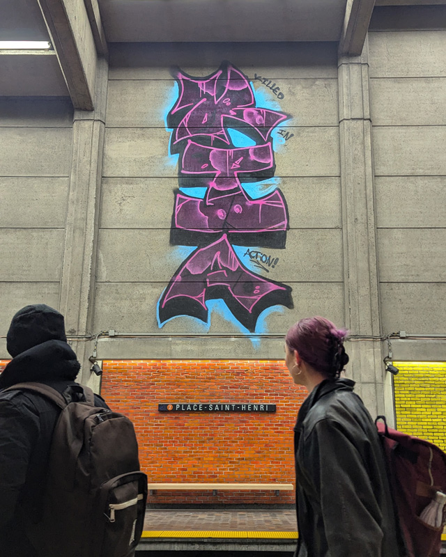 khaoe-metrosthenri2511a 2025/12/26 640 × 800 Retrospective of 2025 graffiti Khaoe in rappel in a Montreal metro station