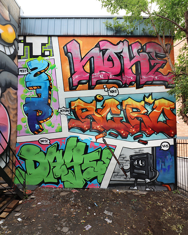 vhs-noke-acrow-pest-dayse-up25 2025/12/26 640 × 800 Retrospective of 2025 graffiti the VHS crew wall for the 2025 edition of Under Pressure featuring Noke, Acrow, Pest and Dayse
