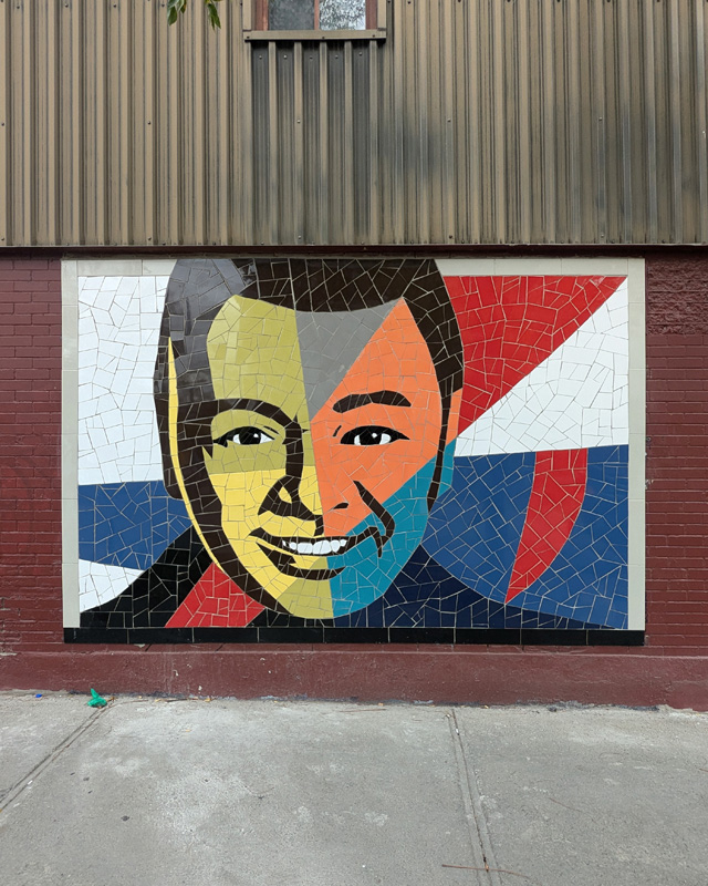 gascon-hochelaga25 2025/12/29 640 × 800 Retrospective of 2025 pasted street art and installations mosaic tribute to Normand Brathwaite by Gascon in Hochelaga
