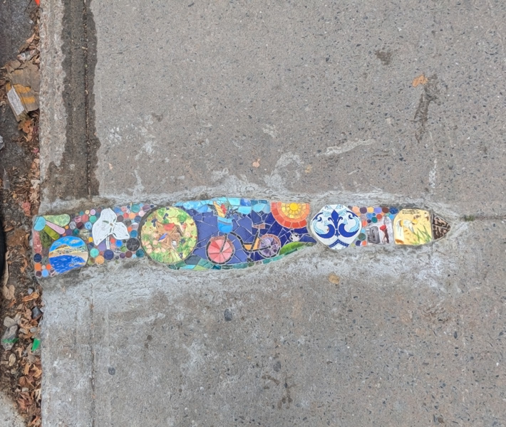 mosaicosnelson-duluth25c 2025/12/29 710 × 600 Retrospective of 2025 pasted street art and installations Mosaic art in a sidewalk crack by Mosaicos Nelson, in the Plateau