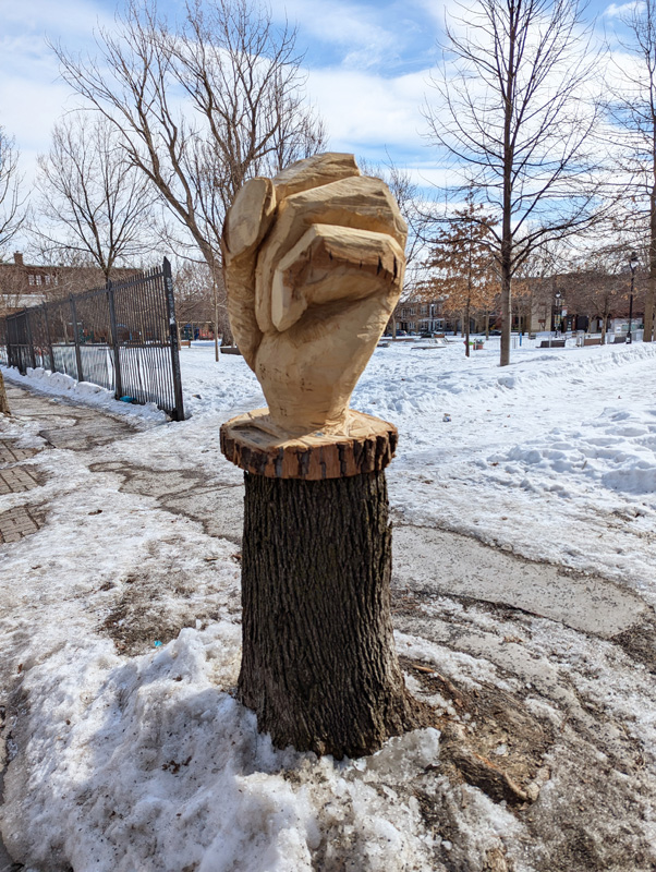 philoouz-hochelaga2501b 2025/12/29 602 × 800 Retrospective of 2025 pasted street art and installations wood installation by Philippe St-Denis in Hochelaga