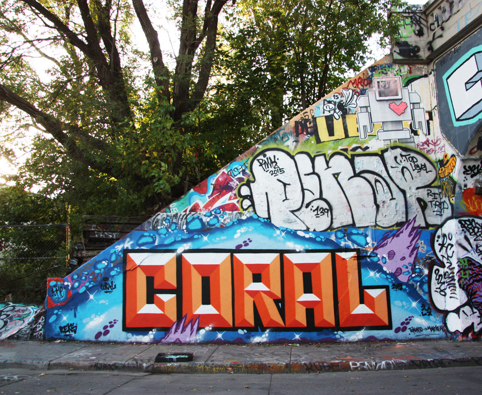 rouen1509-coral 2015/10/05 976 × 800 rouen1509-coral Coral (bottom), a Penar throwie (middle) and a Lovebot wheatpaste (top)